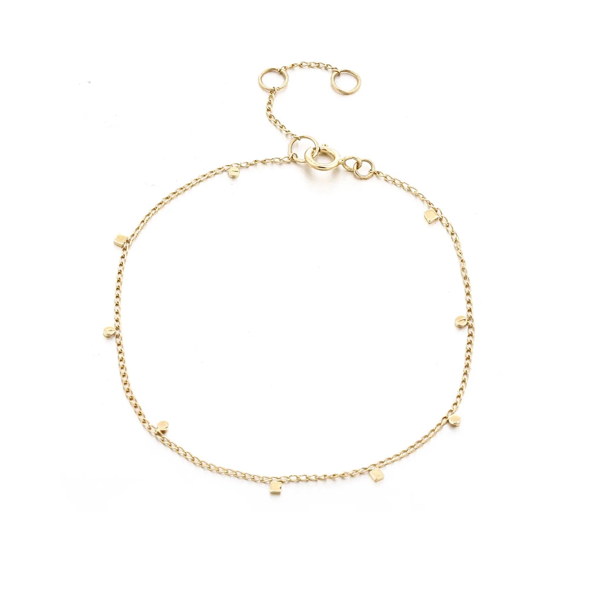 The Soleil Disc Bracelet captures the warmth and brilliance of golden sunlight in a sleek, modern design. Featuring delicate 14k gold discs that shimmer with every movement, this bracelet is the perfect balance of minimalism and sophistication.